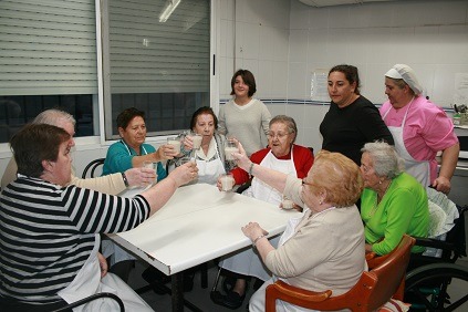 Sólo quedan los agradecimientos: primero, a la cocinera y a la auxiliar de enfermería que nos ayudaron con la preparación del postre y que colaboraron con una gran sonrisa en el taller. Y segundo, a cada una de las abuelas que accedieron a realizar ese postre con el cariño y buen hacer que las caracteriza.